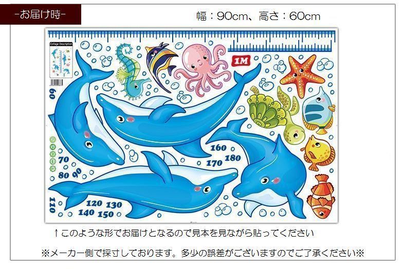 ウォールステッカー 身長計 イルカ 海の生物 イラスト付き身長計
