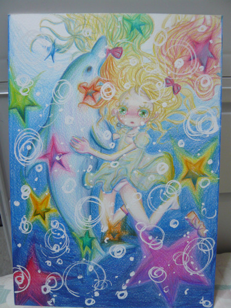 イルカ 女の子 クレヨン イラストのイラスト素材 Pixta